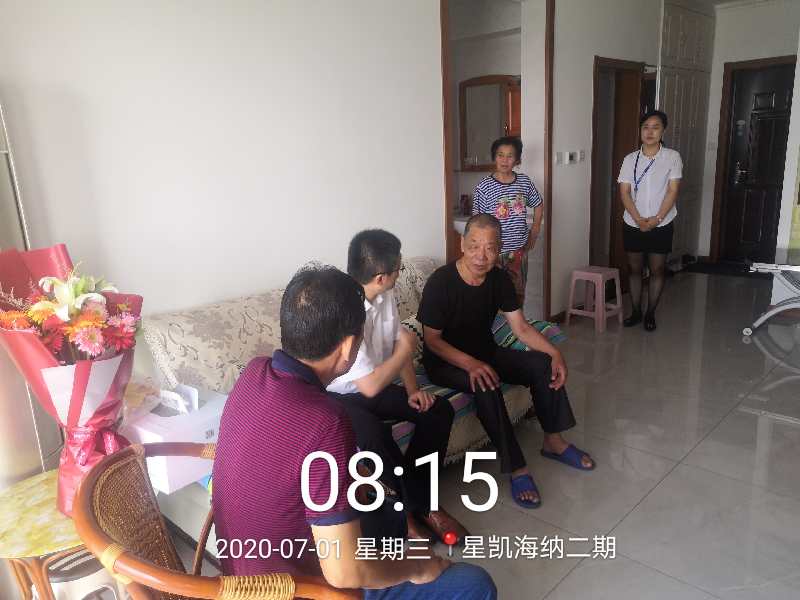 作者:管理员 2020-07-02 14:13:05 1825人浏览今年以来,东营锦绣物业按照政府部门和社区组织的要求,以创建和谐小区,和谐物业与业主关系,营造良好服务关系为目的,针对星凯海纳城项目实际,对65岁以上的老年业主实施送生日祝福活动。7月1日,正值党的生日,又是海纳城二期业主于亦树老人68岁生日。公司副总经理安中杰带领管理处经理王清杰、经理助理刘玲玲和客服主管等人,带着生日蛋糕和鲜花,到于亦树家中为老人送上锦绣物业的一份生日祝福。公司领导在问候老人身体健康和生活情况的同时,就物业目前的服务征询意见和建议,老人在肯定物业服务的同时,也希望物业今后的工作越做越好。