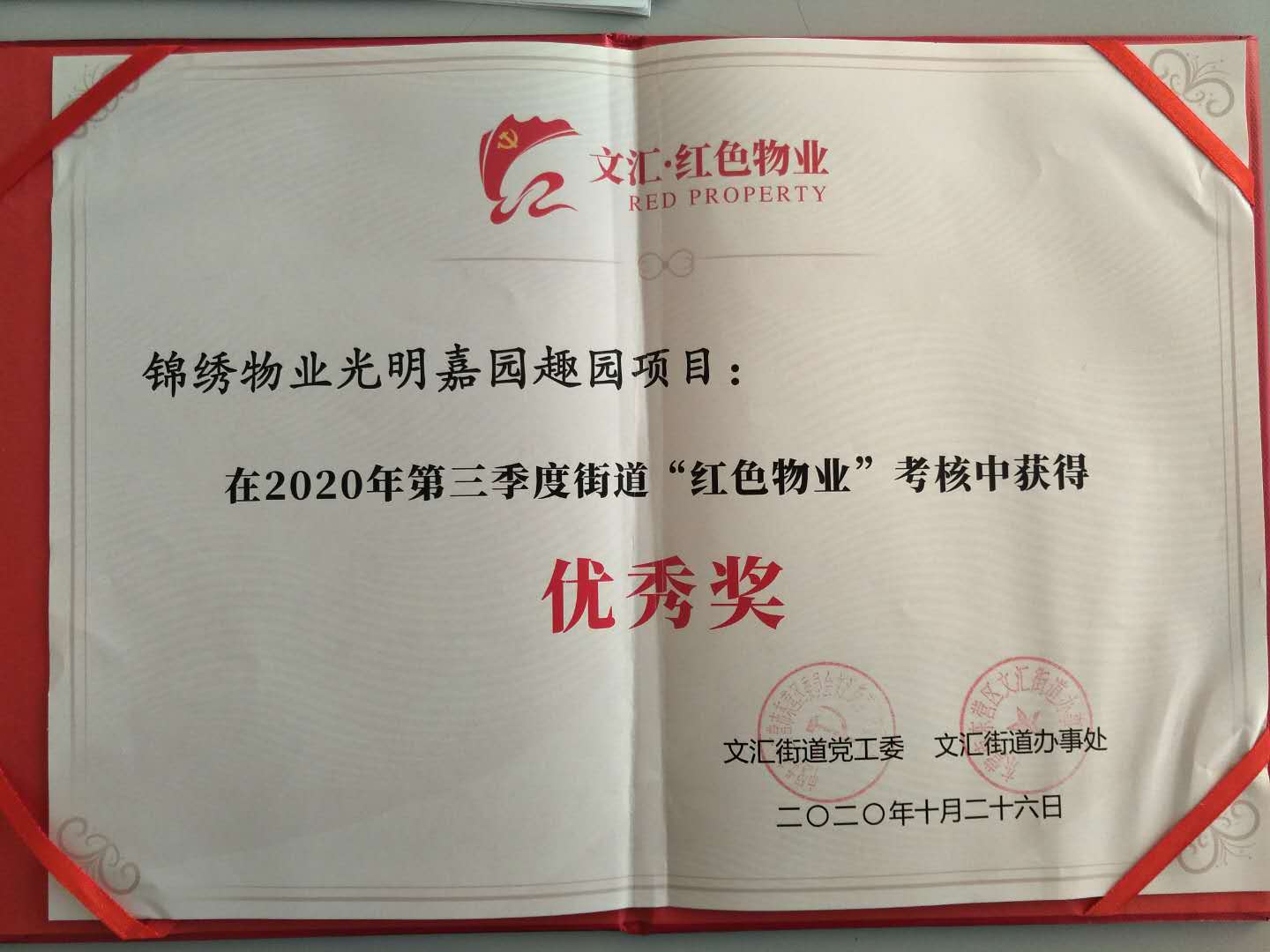 作者:管理员 2020-11-28 08:18:10 1653人浏览新闻描述:光明嘉园项目获得文汇街道三季度“红色物业”考核优秀奖