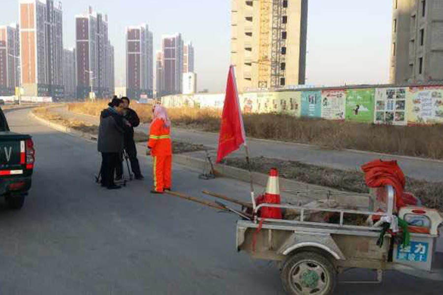 2016年1月27日早7:30,东营区电视台记者来到太行山路,对我东营锦绣物业公司优秀保洁员冯国美进行了采访。