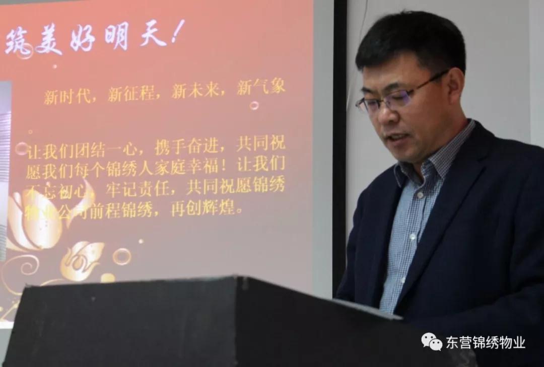 公司总经理刘俊生出席会议并作题为《勇于担当,敢作敢为,共同谱写锦绣物业发展新篇章》报告。副总经理牟华梅主持会议。公司法律顾问、各管理处(项目)负责人、公司办公室负责人和荣获年度表彰的先进项目、先进班组、创新奖、优秀管理人员和优秀员工等在公司主会场参加会议,相关人员在各管理处(项目)客服中心分会场收看。