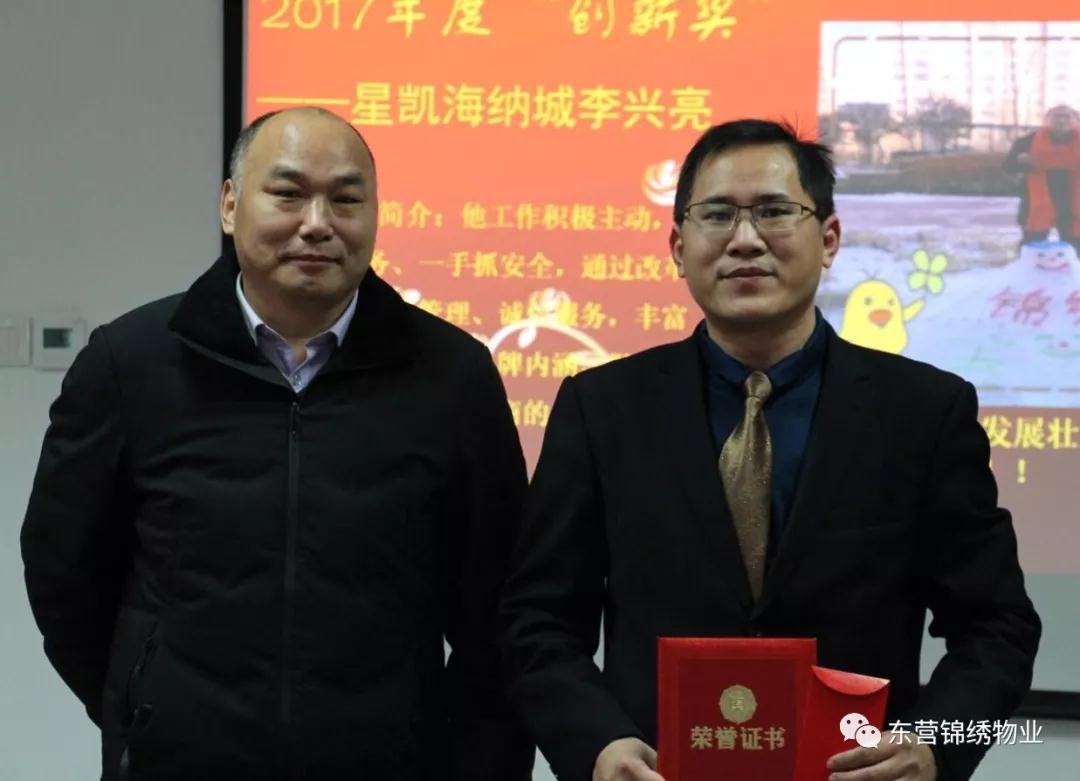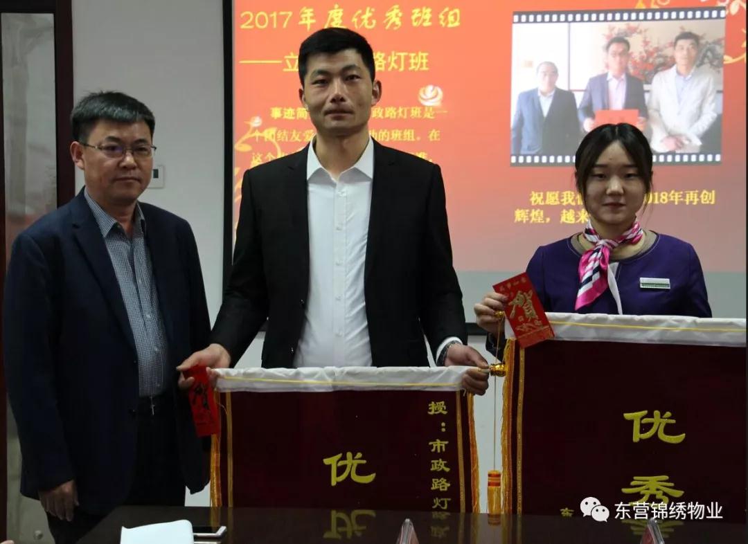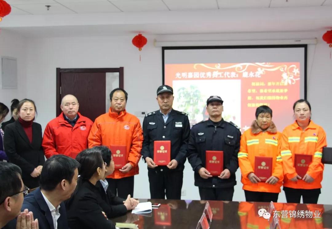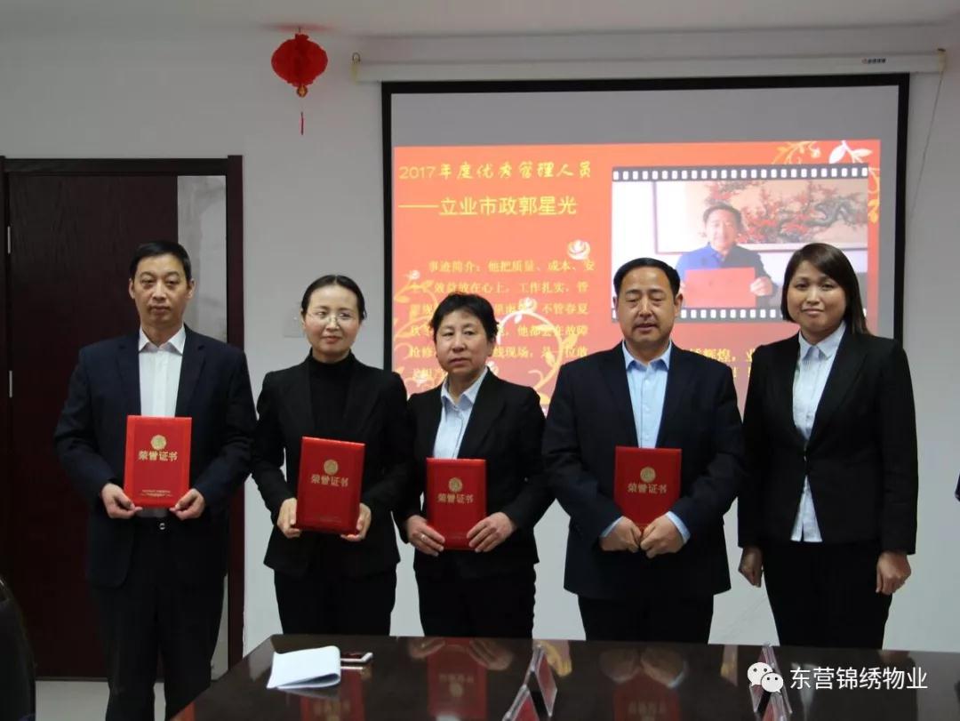 会议宣读了锦绣物业公司《关于表彰2017年度优秀项目、优秀班组、创新奖、优秀管理人员和优秀员工的通报》。公司领导为先进集体和个人颁奖。先进集体优秀代表做了典型发言。