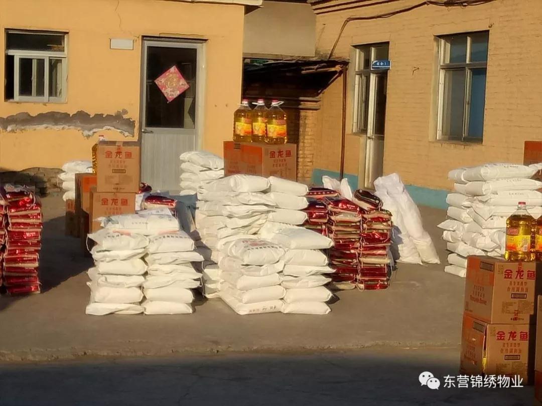 公司为每名员工准备了大米、面粉和油等节日福利。