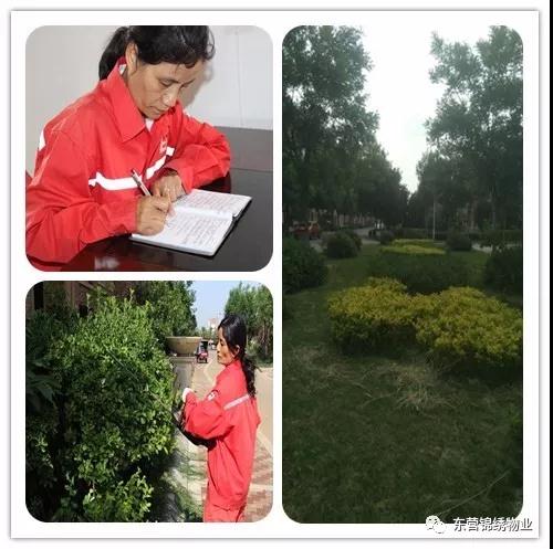 张青闲不住。刚从工作岗位上退下来,她就被东营锦绣物业服务有限公司聘为环境部绿化主管。4月8日上午,她风尘仆仆地来到公司报到,在熟悉了自己的职责和工作要求后,下午就参加了公司绿化工作调研。小区绿化管理是物业服务水平的重要体现。几天时间里,她和同事跑遍了公司服务的所有小区,把绿化现状摸得清清楚楚。如何做好公司绿化工作,她有了细致的计划和打算。 4月底,公司一个新服务项目交接。按照公司和开发商提出的要求,她与项目负责人连续几天现场查看小区绿化状况,及时提交了小区绿化整改方案,为提升小区服务品质打下了基础 。