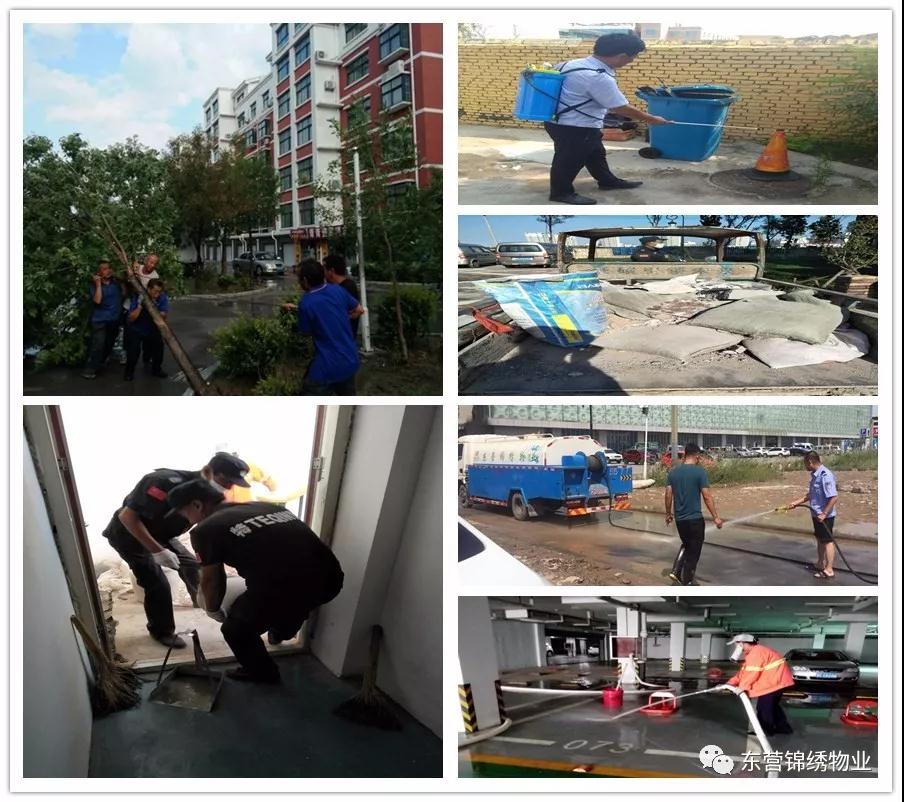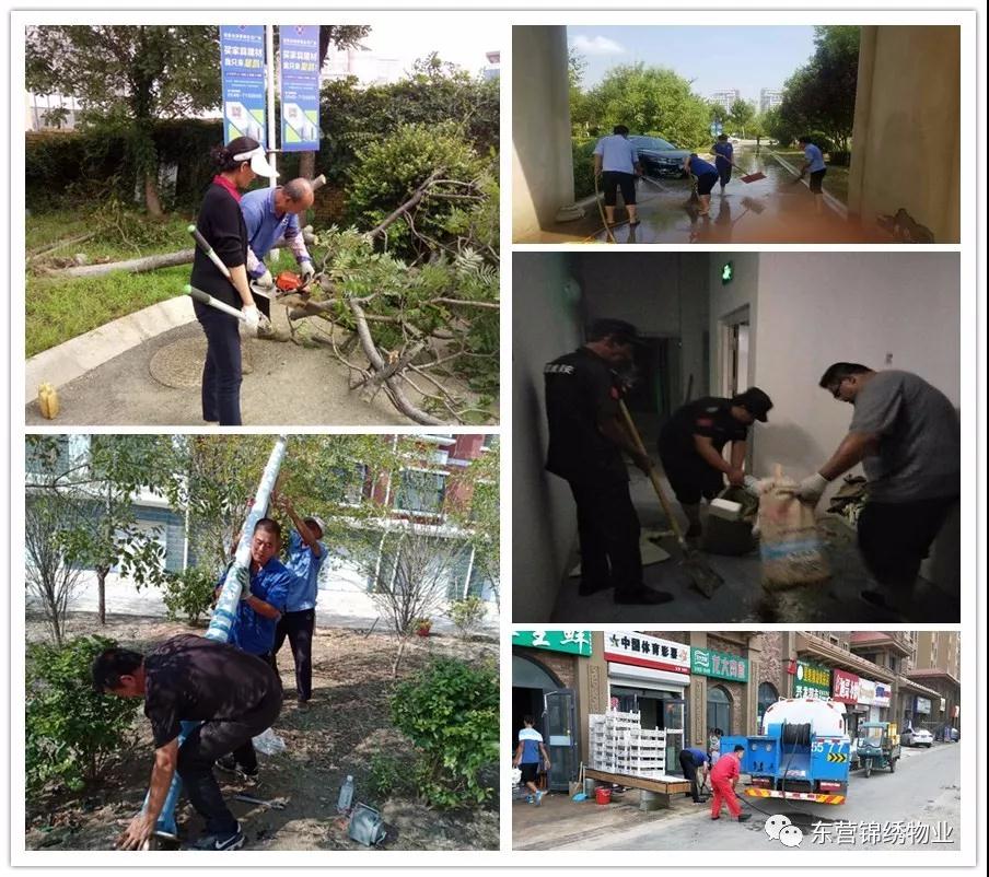 风雨停后,东营锦绣物业公司启动应急预案,快速反应,积极应对,加大服务力度,有序展开灾后清理清扫会战,尽快恢复和维护小区业主正常的生活秩序。 下面是员工们自己用手机拍摄的灾后清理清扫会战的场景图片。每张图片背后都能体现出我们员工对家园的热爱,对工作的尽心和对业主的责任,每一张图片也都是对我们员工辛勤付出、忘我工作的最好勉励。