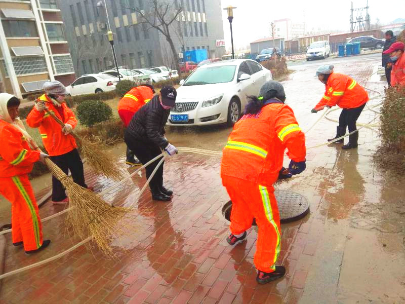 为了营造干净整洁的小区环境,管理处要求每位保洁员用心扫地,用心做事,做到“好天和坏天一个样,立体和平面一个样、检查和不检查一个样”。暴雨过后,管理处组织员工全面清扫小区,确保了路面、地下室和地下车库无积水。
