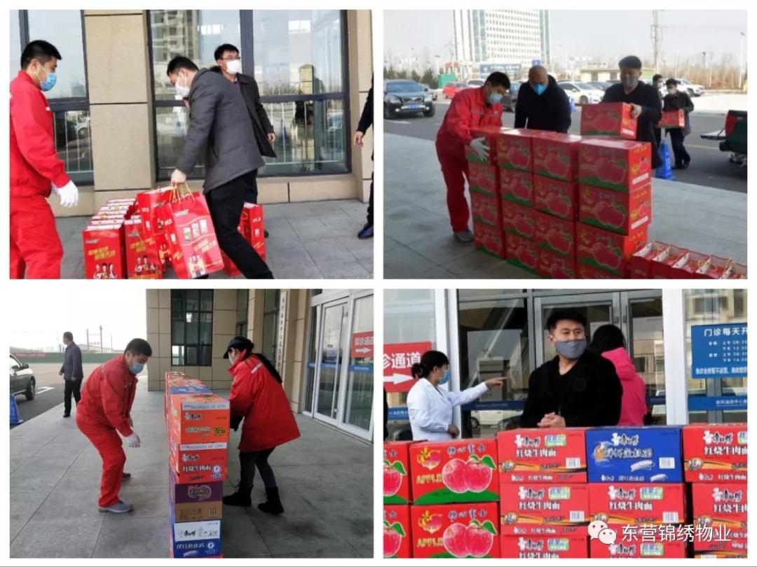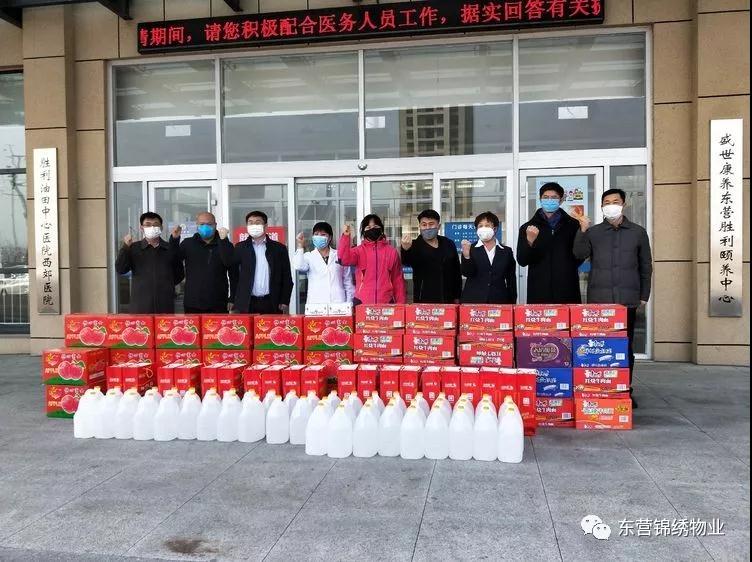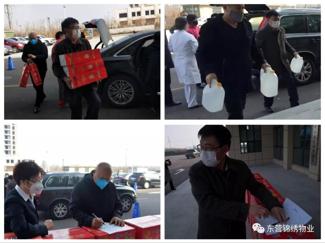 作者:管理员 2020-04-10 09:27:19 1449人浏览“疫情防控,人人有责,我们愿用自己的一点绵薄之力去帮助奋战在抗“疫”一线的医护人员”。2月9日下午,东营区政协委员、东营锦绣物业公司总经理刘俊生与东营区政协委员杨云、刘小民、张国刚等爱心企业家一行4人到胜利油田中心医院西郊医院,一同捐赠了医用口罩2箱、酒精50桶疫情防控物资和20箱方便面、20箱苹果、20箱火腿肠等慰问品,总共价值20000余元。