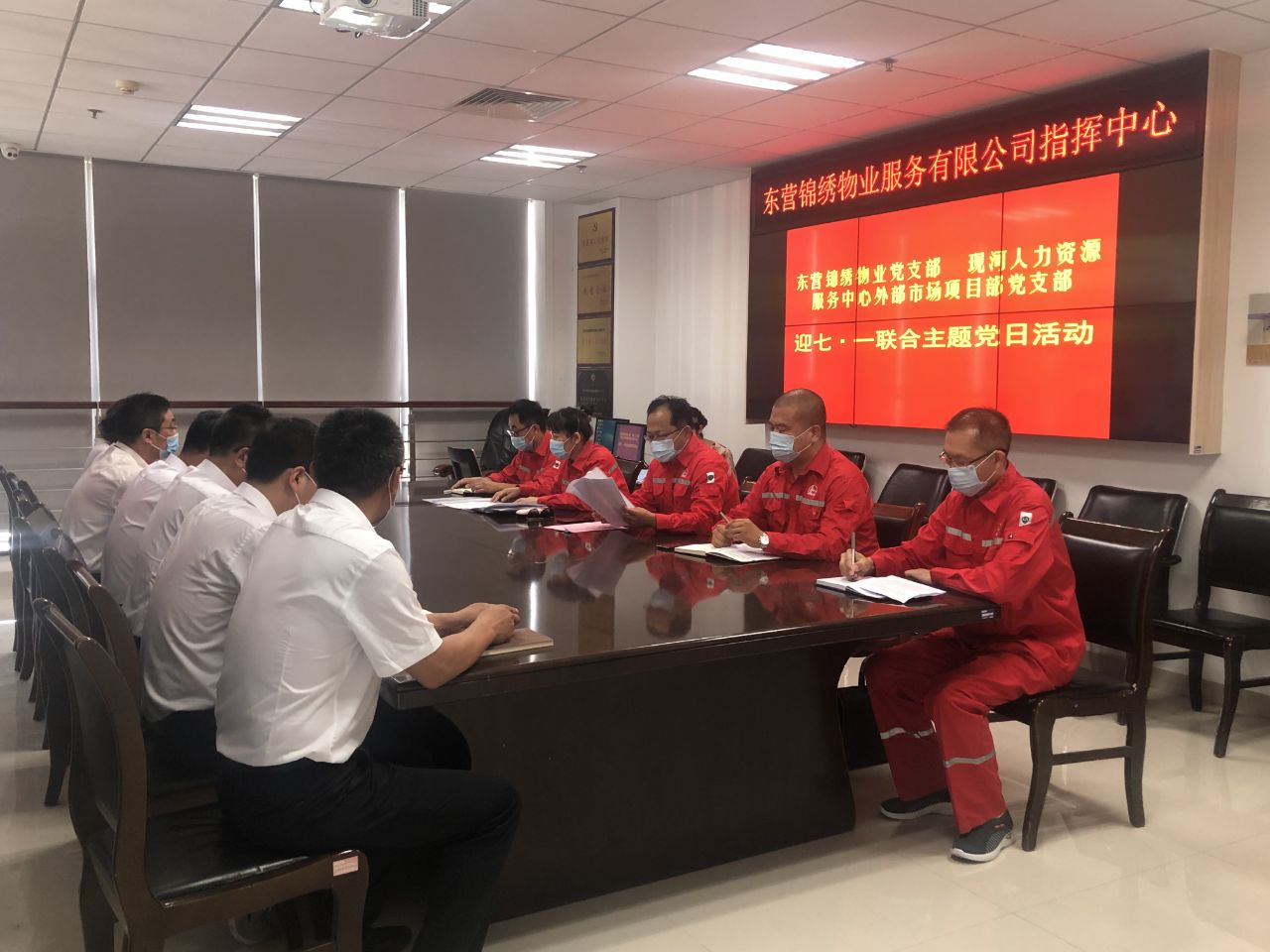 党员座谈议程中,两个支部的党员们围绕 “打造锦绣服务品牌,推进红色物业建设”和“胜利油田百日攻坚创效”活动,畅谈如何立足本职岗位发挥党员先锋模范作用。座谈最后,现河人力资源服务中心安全主管王乃峰作了总结性发言,希望两家党支部在党建联动,互帮互学,互相提高,不断提高基层党建水平,为生产经营中心任务服务。会后,全体党员到锦绣物业香桥郡项目进行了义务劳动,主题党日活动圆满结束。