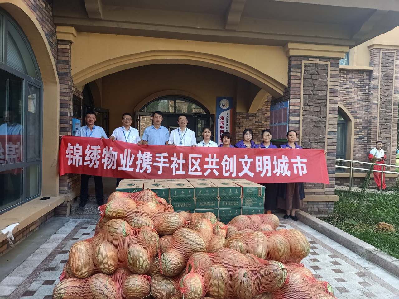 酷暑送清凉,为社区工作人员和一线员工奋战创城鼓劲加油。 入伏以来,高温闷热天气居多,奋战在创城攻坚一线的物业员工、社区工作人员,工作量比平时加大了许多,为了保证暑期工作安全,各项目根据天气情况,合理调整室外工作时间,提醒员工及时补水;公司为社区工作人员及一线员工及时送去西瓜、矿泉水、绿豆、茶叶等降温物品,炎炎夏日,为大家创城工作加油鼓劲送清凉。